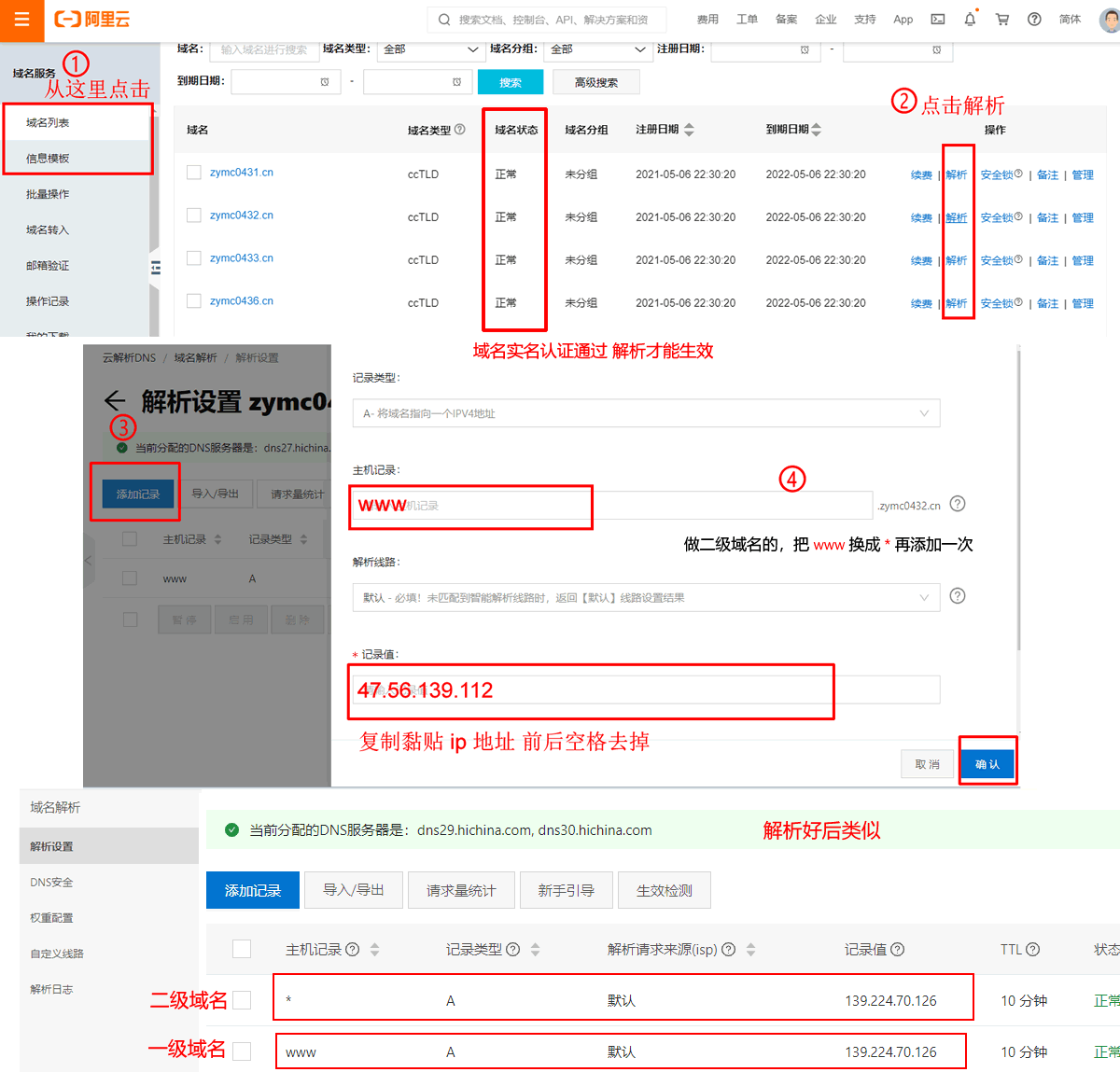 5. 備案完成再解析,一個域名對應(yīng)一個ip。